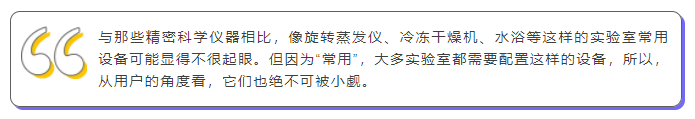 與那些精密科學(xué)儀器相比,像旋轉(zhuǎn)蒸發(fā)儀(以下簡(jiǎn)稱:旋蒸儀)、冷凍干燥機(jī)(以下簡(jiǎn)稱:凍干機(jī))、水浴等這樣的實(shí)驗(yàn)室常用設(shè)備可能顯得不很起眼。但因?yàn)椤俺S谩保蠖鄬?shí)驗(yàn)室都需要配置這樣的設(shè)備,所以,從用戶的角度看,它們也絕不可被小覷。