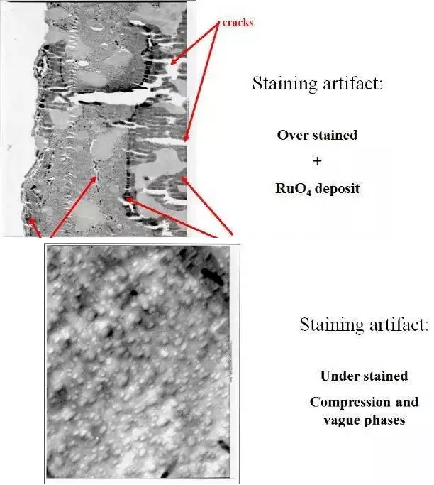 對于橡膠類材料如ABS,Epoxies, HIPS等,或者含有這些材料的混合物,應(yīng)該先用OsO4蒸汽或者水溶液染色,之后再進行RuO4染色。