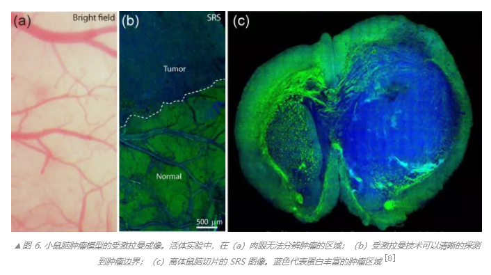 綜上,CARS 與 SRS 都可以基于生物體中核酸、脂質和蛋白等物質自身的 Amide I、CH2、CH3 等化學鍵進行特異性成像。由于其免標記、高分辨率、快速成像以及三維掃描的優(yōu)點,CRS 在病理檢測、生物代謝、藥物運輸等方面具有廣泛應用。具體的應用部分將在下一課堂詳細講解。