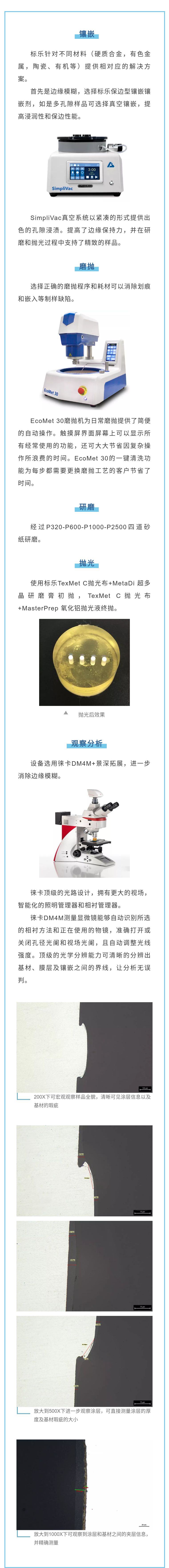鍍膜的樣品因基材以及各膜層之間材質(zhì)不同,硬度不同,制樣過(guò)程容易造成劃痕,嵌入以及邊緣不平整等缺陷。