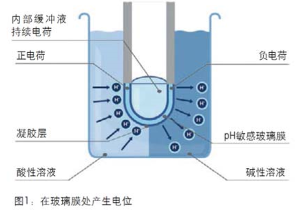 在任何的水溶液當(dāng)中,酸都以氫離子的形式存在。pH電極的玻璃膜經(jīng)過特殊設(shè)計(jì),能夠跟這些氫離子互動(dòng)產(chǎn)生電位差,進(jìn)一步可轉(zhuǎn)換為pH值。為實(shí)現(xiàn)與氫離子的互動(dòng),玻璃膜必須避免蛋白質(zhì)殘留等污染。任何存在于玻璃上的污染,都會(huì)影響與氫離子相互作用的表面區(qū)域,減緩電極的響應(yīng)速度。