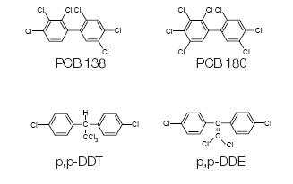 PCB 28, PCB 52, PCB 101, PCB 138, PCB 153, PCB 180