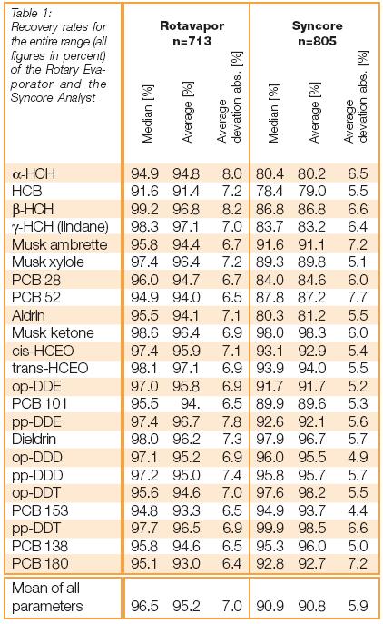 旋轉(zhuǎn)蒸發(fā)儀的回收率與Syncore比較,中位數(shù)大概高5%,平均值大概高為4%(見表2)。