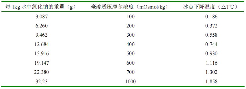 表 1 滲透壓摩爾濃度測(cè)定儀校正用標(biāo)準(zhǔn)溶液